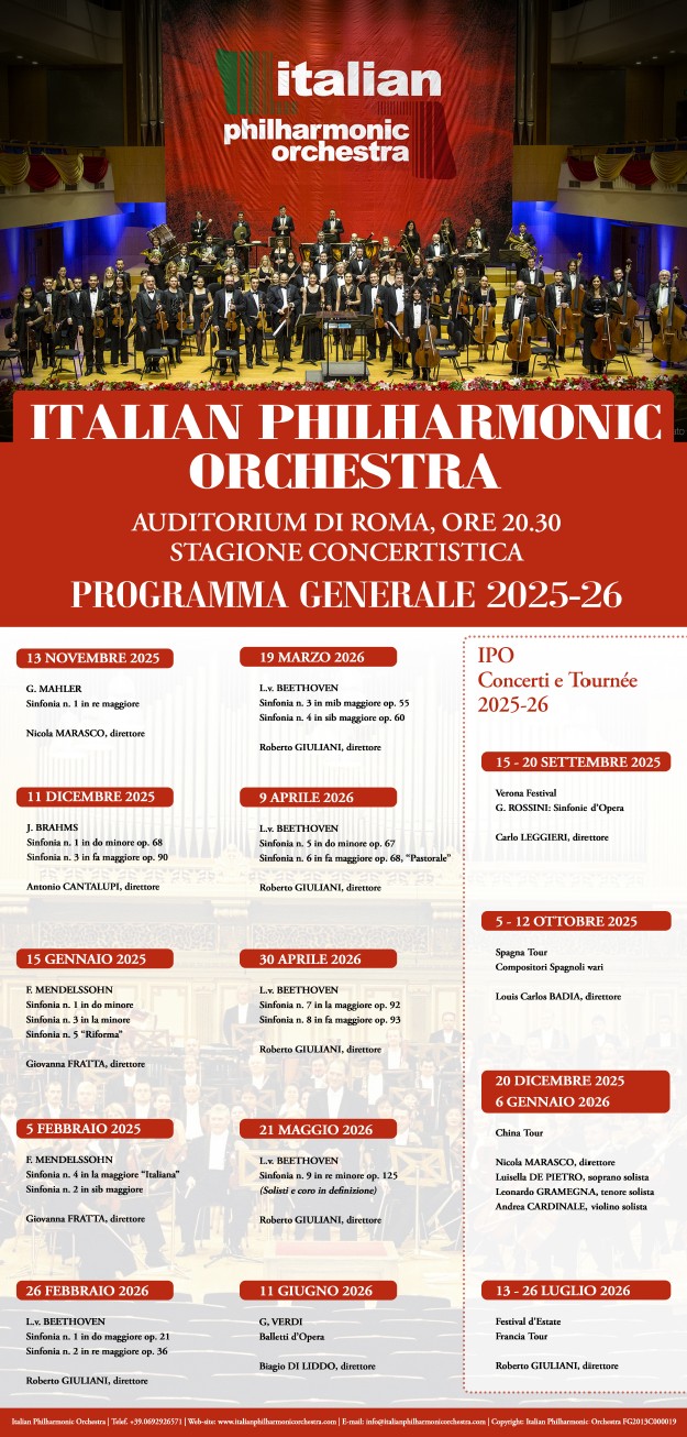 Tra le più raffinate orchestra del paese, la Italian Philharmonic Orchestra è una delle più grandi organizzazioni culturali in Italia. A partire dalla sua nascita nel 1970 Leggi altro…